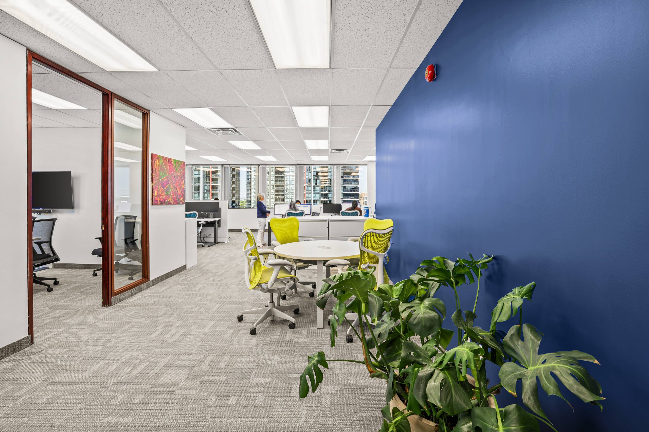 Primary Construction was retained to deliver an interior office refresh for Colliers Project Leaders at their 30 Eglinton Ave. W location in Mississauga. The scope included selective demolition, drywall patching, ceiling tile replacement, new electrical and data drops, millwork repairs, flooring patchwork, and a new kitchen faucet installation.
